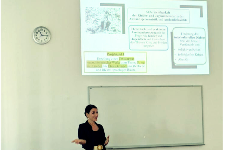 Der Vortrag präsentierte ein interkulturell ausgerichtetes Übersetzungsprojekt, in dessen Rahmen Studierende Werke der deutschsprachigen sowie der BKMS-Jugendliteratur (Bosnisch, Kroatisch, Montenegrinisch, Serbisch) mit thematischem Schwerpunkt auf Frieden und Krieg in die jeweils andere Sprache übertrugen. Zielsetzung war es, durch den Prozess der literarischen Translation translinguale und transkulturelle Dialogräume zu generieren, die es ermöglichen, jugendliche Perspektiven auf Konflikt, Friedensdiskurse und Verständigungsprozesse in ihrer ästhetischen wie diskursiven Vielschichtigkeit sichtbar zu machen.
