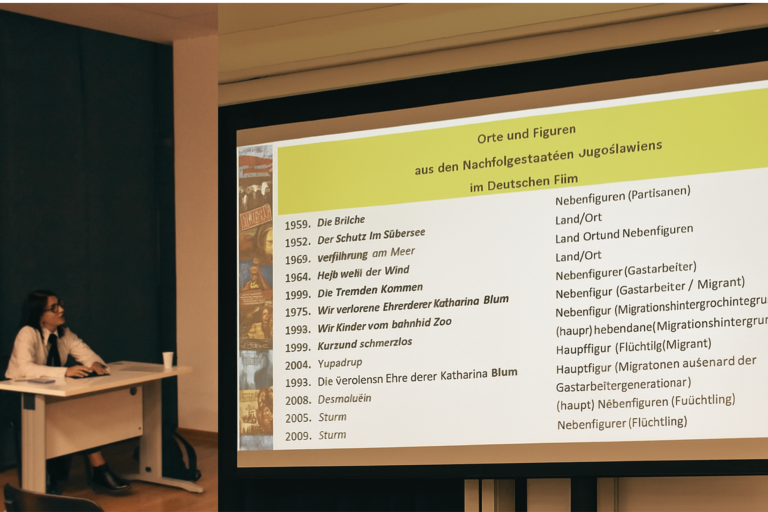 Der Vortrag fokussierte den literarhistorischen Transformationsprozess von der ex-jugoslawischen Gastarbeiterliteratur hin zu einer vielschichtigen deutschsprachigen interkulturellen Literatur. Unter Rückgriff auf die Werke von Vera Kamenko und Saša Stanišić wurde untersucht, in welcher Weise Diskurse zu Migration, Kriegserfahrung und kultureller Identität narrativ verhandelt, ästhetisch codiert und aus einer transkulturellen Perspektive neu konfiguriert werden.